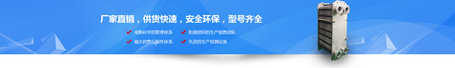 我們是一家專業從事板式換熱器新品研制、模具開發、應用設計、生產制造、銷售服務的綜合性生產型企業。所生產的釬焊式板式換熱器與可拆開式板式換熱器產品可廣泛應用于冶金、食品、輕工、化工、制冷與暖通等領域 。